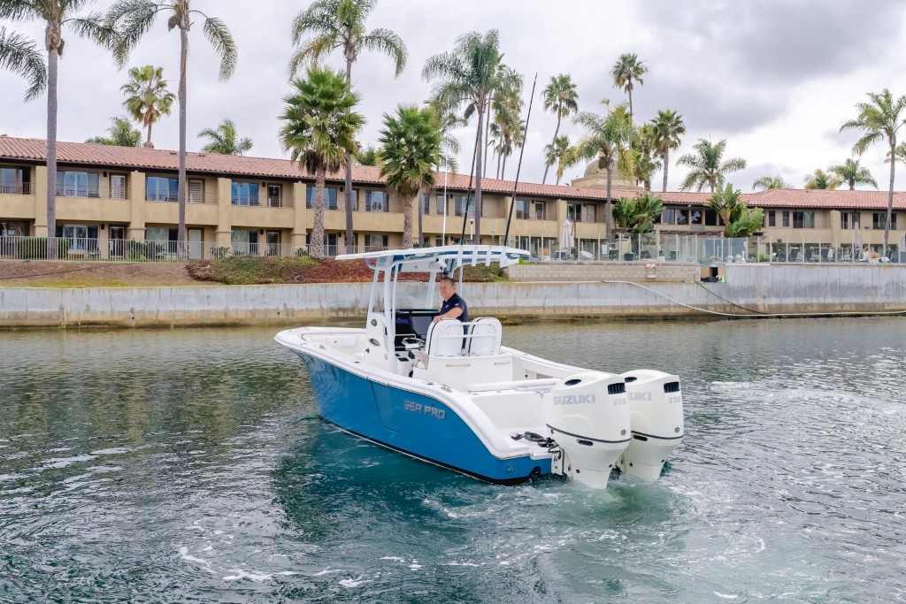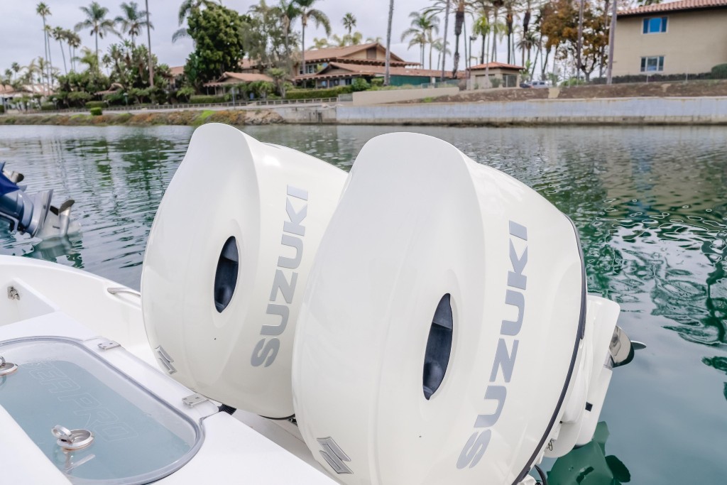 Twin 175 hp Suzuki outboards — plenty of power