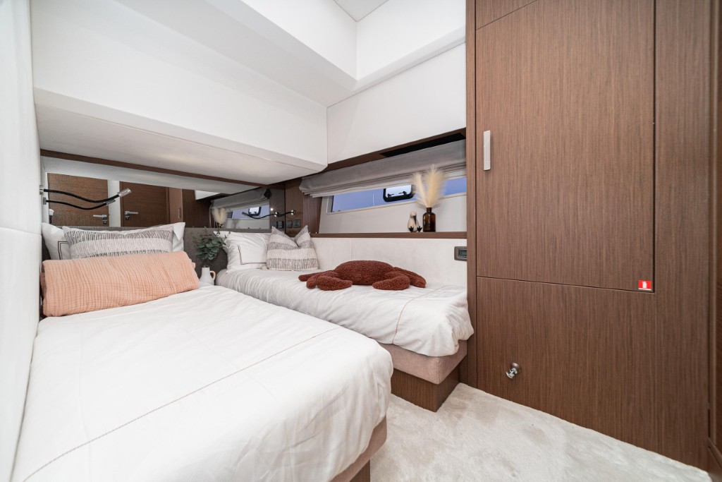 The 2024 Prestige X60 has an abundance of outdoor entertaining spaces complimented with a modern interior design and three voluminous staterooms. She is compared with much larger motor yachts when considering the utilization of space for her luxurious accommodations and remarkable performance. The innovative hull design was crafted as a semi-displacement vessel to provide exceptional cruising comfort. She is powered by twin Cummins QSC 8.3 inboard diesel engines for 1200 combined horsepower, reaching speeds in excess of 25 knots! The Prestige X60 is perfect for those seeking sophisticated adventures with a spacious entertainment platform and your exclusive sanctuary on the water.